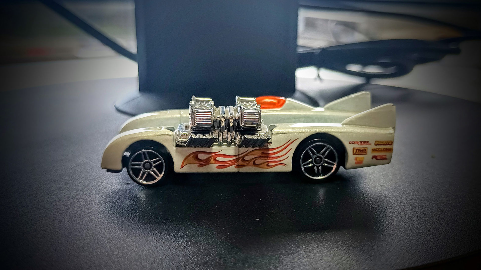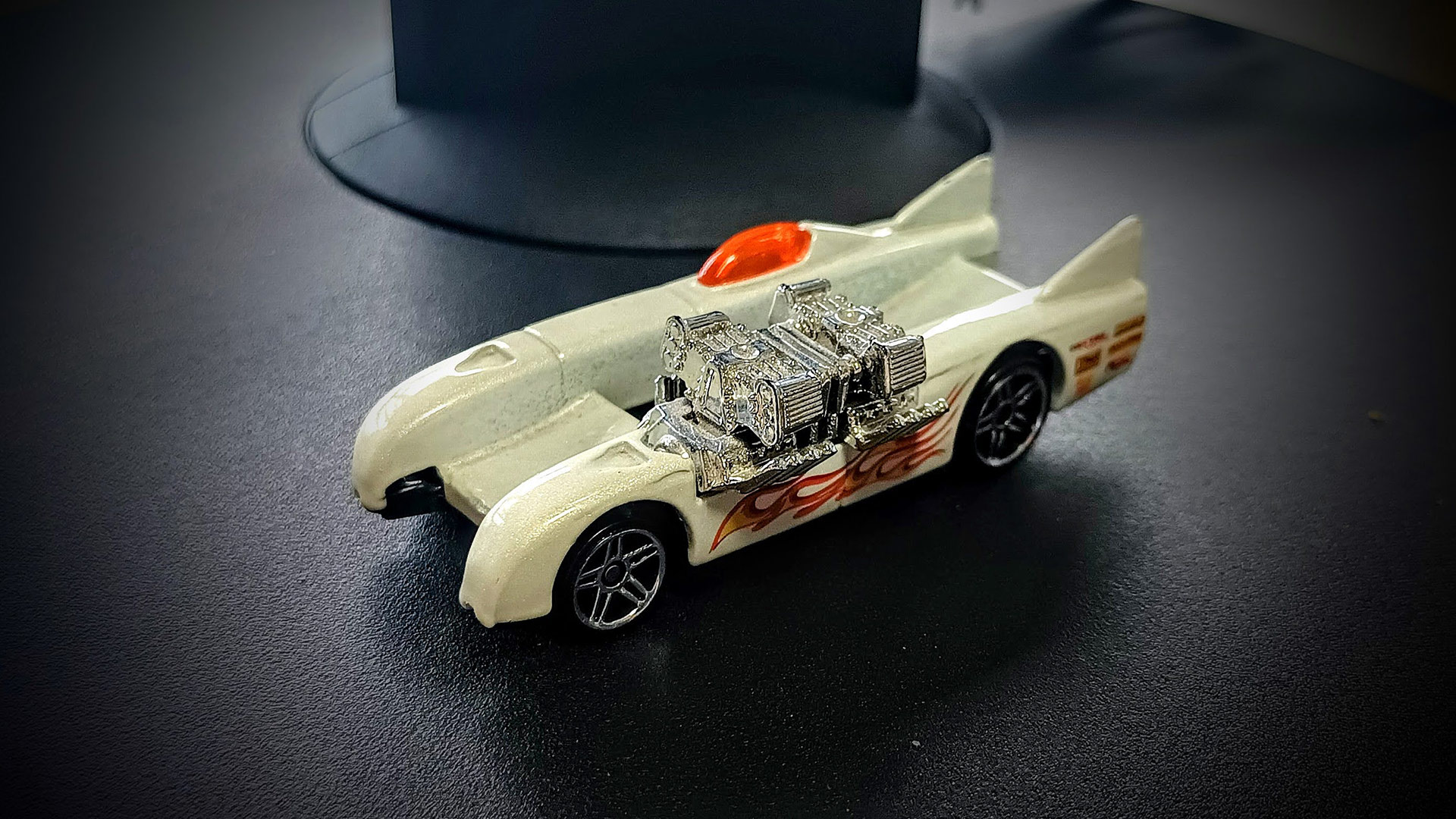 Modello iconico di fine anni '90, Double Vision, come suggerisce il nome, è caratterizzato da una doppia carrozzeria collegata nella parte centrale da due alettoni. Questa versione (2006 - Mainline), presenta una scocca inferiore in plastica nera e superiore in metallo verniciato bianco perlato.
