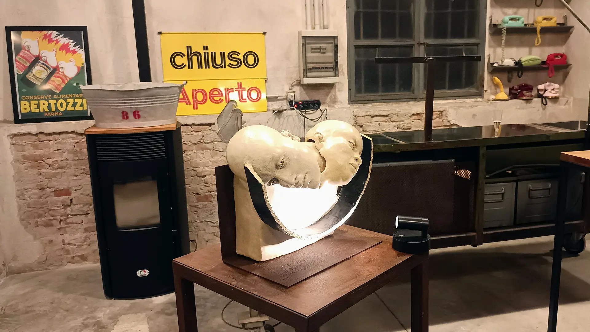 La mostra di Sbernini si inserisce perfettamente nel progetto de Il Capanno, situato in una corte agricola caratterizzata da fabbricati in stile industriale, che conferiscono al luogo un grande charme. Storicamente impiegato nella lavorazione agricola (soprattutto del pomodoro) e poi in diversi usi commerciali, oggi Il Capanno si è trasformato in uno spazio speciale e visionario, ideato per supportare eventi culturali di varia natura che includono mostre d'arte, allestimenti fieristici e persino eventi enogastronomici attorno a un’antica fontana in pietra e una “cucina fucina” in ferro di recupero.